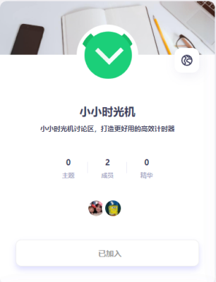 元社区—-小小时光机 圈子,参与小小时光机的讨论,共同打造更好用的高效计时器: https://s.apps.vip/forum?id=92